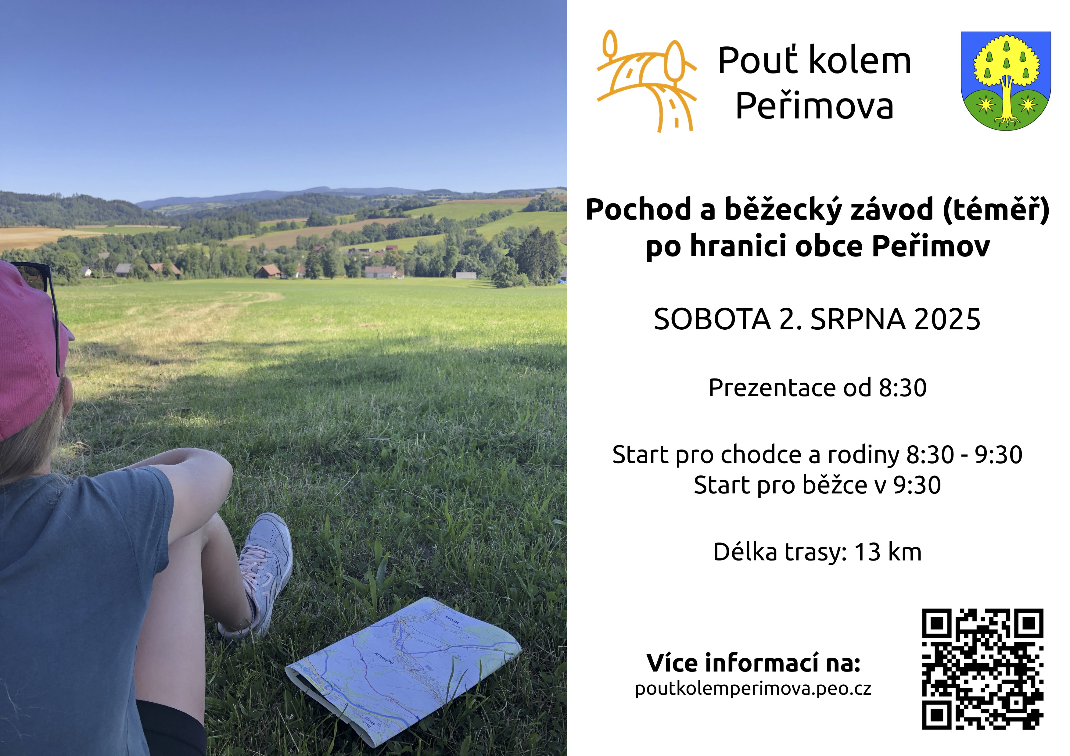 Pochod a běžecký závod (téměř) po hranici obce Peřimov v sobotu 2. srpna 2025. Prezentace od 8:30.